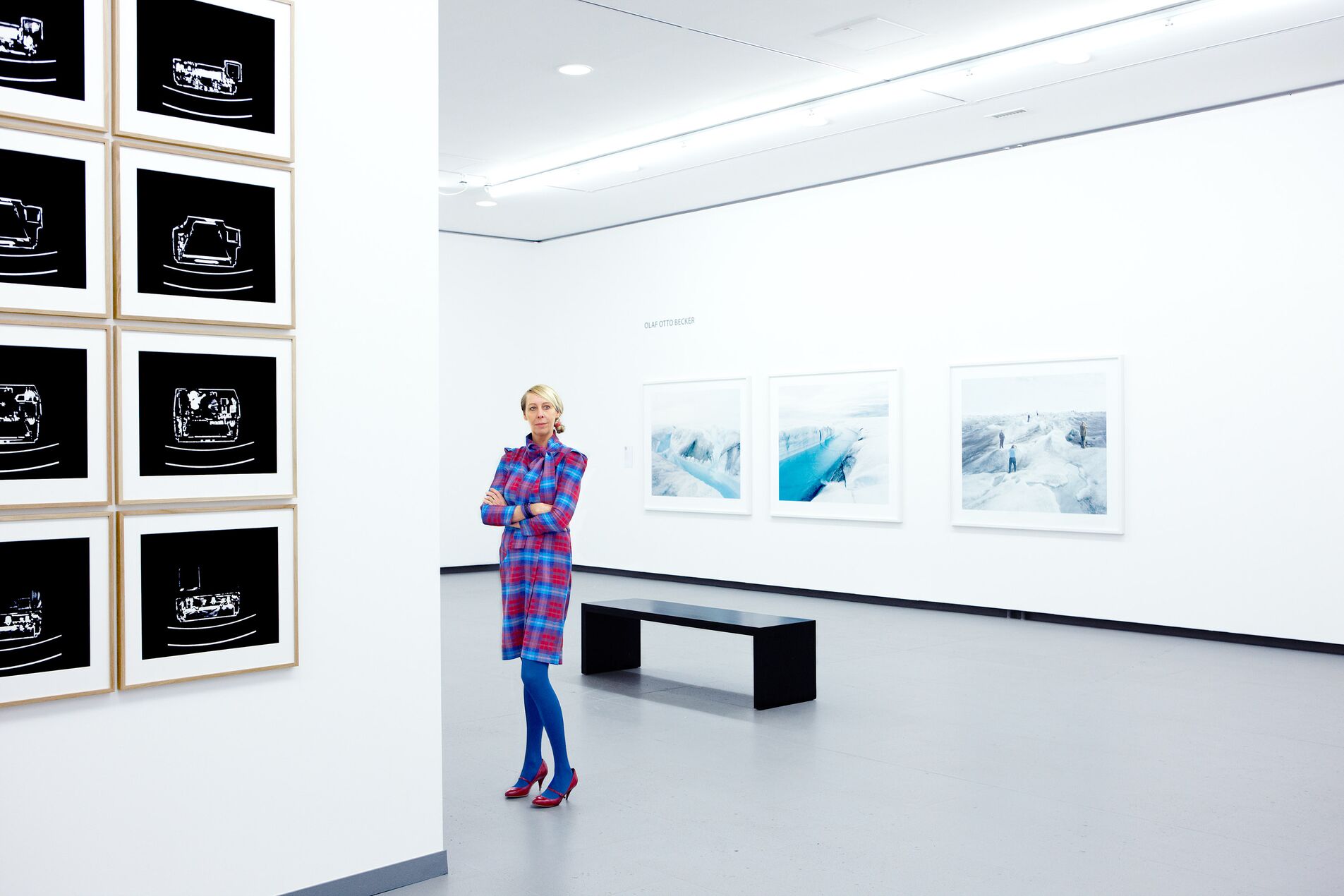 CHRISTINE KUBATTA IM NWR-FORUM DÜSSELDORF, LINKS ARBEITEN VON MISCHA KUBALL, RECHTS VON OLAF OTTO BECKER -
